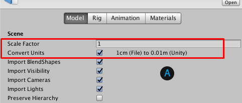 Scene units converted to : 사용자가 임의로 export되는 오브젝트의 scale을 고정한다. 실제 export된 model의 정보는 import 단계에서 모델데이터로 저장되면서 고정되나 transform 항목에서 다시 스케일을 바꾸는건 비용면에서 좋지 않은 작업 방식이다. (특히 비균등 스케일 쓰지 말자....저~~~~엉~~~말 필요할때 빼고)