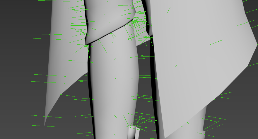 망토부분을 smoothing group을 하나로 합쳐도 노멀 정보를 확인해보면 버텍스가 분리된걸 확인할 수 있다.