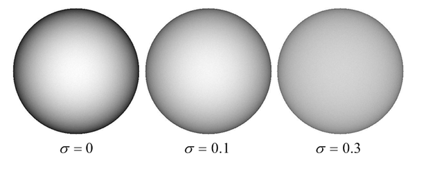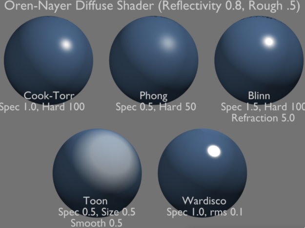 또한, Oren-Nayar 모델은 표면이 거칠기 때문에 입사하는 빛이 반사되는 방향이 일치하지 않는 경우를 고려한다. 이러한 경우에는 반사되는 빛이 표면에서 분산되어 다른 방향으로 향하게 되며, 이러한 분산을 표현하는 데 사용되는 표면의 광택도(Glossiness) 또한 고려하여 표현된다.