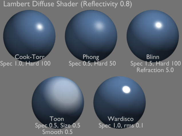 Lambertian 모델은 완전히 무광택한, 매끄러운 표면의 반사를 모델링한다. 이 모델에서는 모든 방향으로 동일한 방향성을 가진 빛이 표면에 직각으로 떨어질 때, 모든 방향으로 같은 밝기로 반사되며, 이 모델에서는 표면의 마이크로 구조나 입사각 등의 다른 변수들은 고려되지 않는다