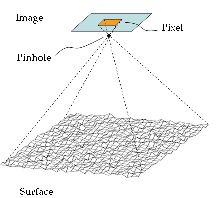 Oren-Nayer Model의 공식을 유도할 때 사용되는 거친 표면(roughness Surface)이라는 것은 서로 다른 각도를 가진 Torrance 와 Sparrow에 의해 제안된 미세면(microfacet)들의 집합으로서 설명될 수 있다. 여기에서 미세면의 표면은 길고 대칭적인 V 자형태의 굴곡(cavity)으로 구성된다고 가정합니다.