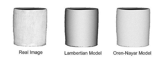 Oren-Nayar 반사 모델과 Lambertian 반사 모델은 모두 빛이 반사되는 표면의 색상을 모델링하는 데 사용되는 반사 모델이다 몇가지 차이가 있다. Michael Oren 과 Shree K. Nayar가 Generalization of Lambert’s reflectance model”, Michael Oren and Shree K. Nayar 논문에서 발표한 모델로 거친 표면으로부터의 diffuse 를 표현하기 위한 reflectance model 이라고 한다.(반대로 거친 표면으로부터의 Specular를 고려한 모델은 Cook-Torrance Model)