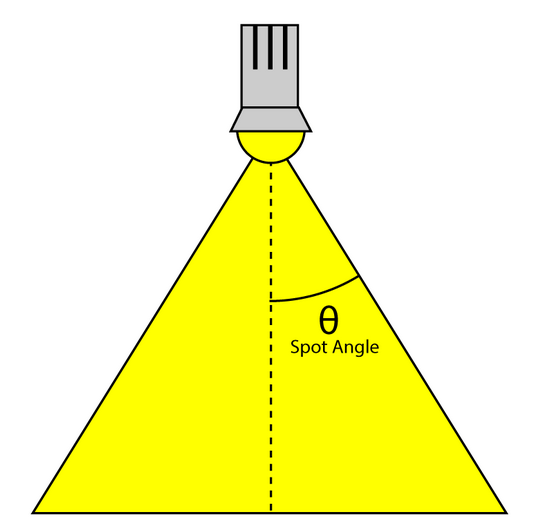 감쇠 계수 외에도 스포트라이트는 원뿔 각도를 가진다. 이 경우, 빛의 세기는 라이트 벡터(L)와 스포트라이트 방향의 내적에 의해 조정된다. 라이트벡터와 스포트라이트 방향의 각도가 스포트라이트 원뿔 각도보다 작으면 해당 지점은 스포트라이트로 비춰져야 한다. 그렇지 않으면 스포트라이트는 음영 처리되는 지점에 빛을 비추지 않는다. DoSpotCone 함수는 스포트라이트 원뿔 각도를 기반으로 빛의 세기를 계산한다.