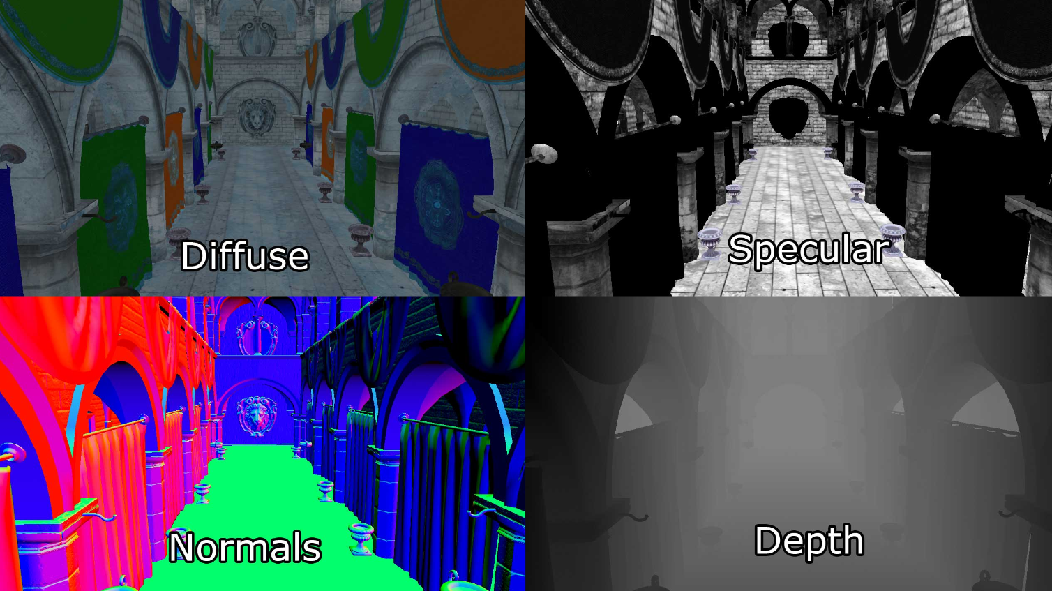 이러한 2D 이미지 버퍼의 조합을 기하학적 버퍼(Geometry Buffer)(또는 G-버퍼)라고 한다.