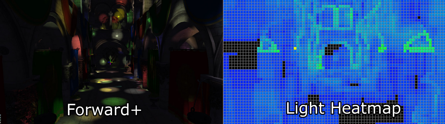 Forward+ (Tiled Forward Shading이라고도 함)는 포워드 렌더링과 타일링된 조명 컬링을 결합하여 셰이딩 처리 중에 고려해야 하는 조명 수를 줄이는 렌더링 기술이다. Forward+는 주로 두 단계로 구성된다.