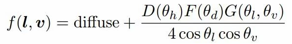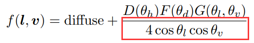 유니티 구현은 G 항목을 V 항목으로 대체하는 DFG(디즈니) – > > DFV(유니티) 공식과 다소 다르지만 전체 프레임워크는 동일합니다. unity URP lit shader의 디렉셔널 라이팅 섹션에 자세한 설명이 있습니다.