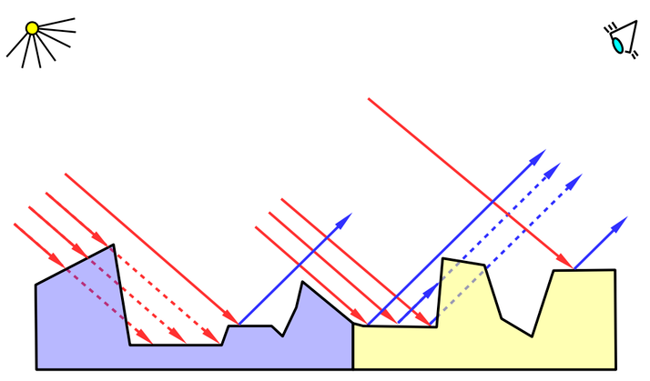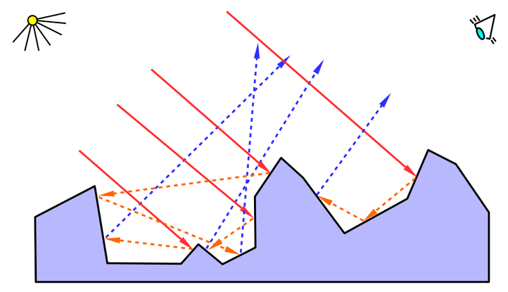 이 텍스트 섹션은 그림(미시적 그림자 및 마스크(마스크))에 해당하며 반사 모델을 한 번만 계산합니다. 일부 광선에는 입사 및 출구 예제가 없습니다. 하나의 효과적인 반사만 계산됩니다.