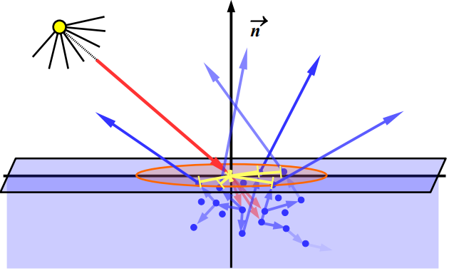 파트 I : Diffuse subsurface scattering : Diffuse reflection term(문헌에 따르면 Diffuse relfection 용어는 subsurface scattering 용어를 가리킵니다.)