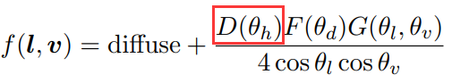 D는 미세 표면의 노멀 방향의 분포입니다. 스페큘러 하이라이트, 스페큘러 모양(Specular shape);