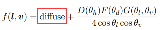 * 일반적으로 Lambert 디퓨즈 항으로 표현되는 것으로 가정되는 확산은 상수 값입니다.