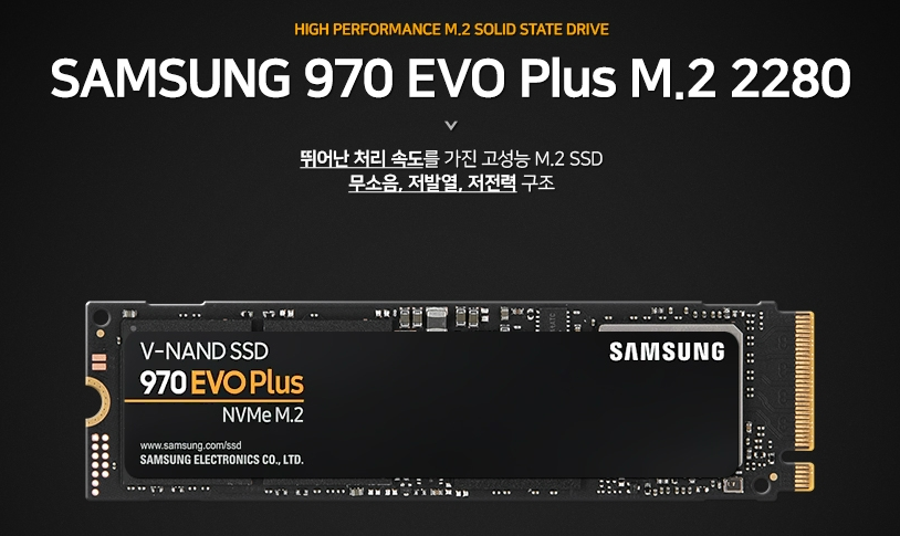 SSD : 970 EVO Plus M.2 2280 1TB . Read 3,500MB/s / Write 3,300MB/s. 이것도 지인에게 받은것. SSD는 아래 5개 제품이 대세라고...