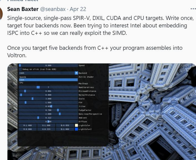 CPU 및 GPU 코드( CircleLang )의 통합 컴파일 및 코드 생성을 달성하기 위해 LLVM Clang C++를 기반으로 고유한 구문을 추가하는 개발자도 있다.