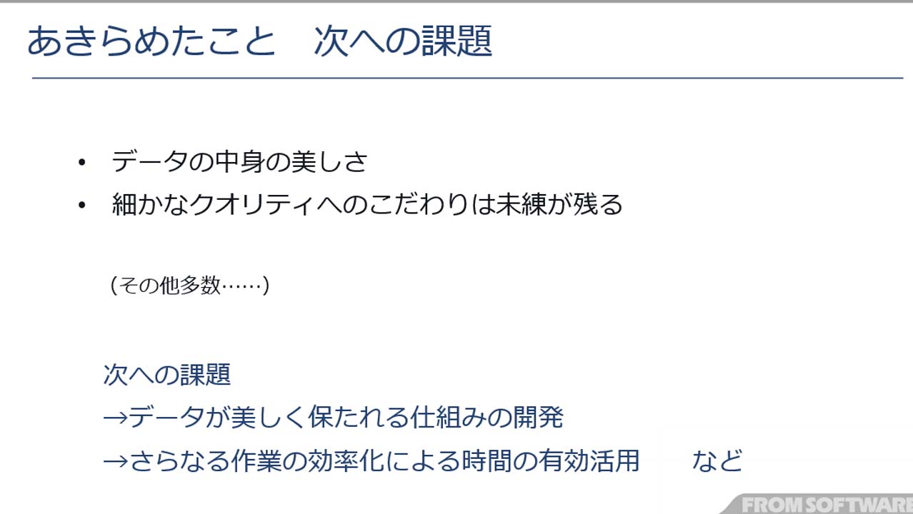 이러한 관점에서 포기한 부분도 있었습니다. 데이터의 내용(아마 구조나 각부의 명칭 룰링등의 것)의 아름다움은, 솔직히 말해 향기롭지 않은 상태였다고 합니다. 섬세한 퀄리티에 대한 고집에도 미련이 남았다는 것으로, 이러한 점은 개발상의 과제가 되었습니다.