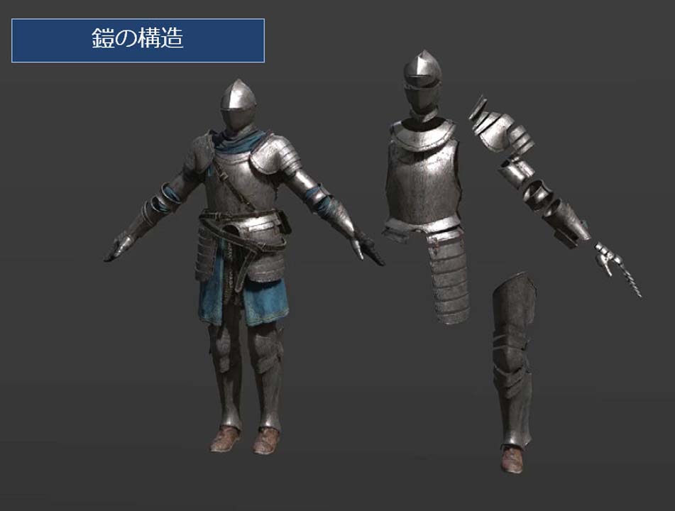 사실에 존재한 갑옷 이외에도, 생물적인 파트가 융합한 판타지 세계 특유의 갑옷도 존재합니다. 그러한 아이템에서도, 현실적인 갑옷의 구조나 제조 방법의 전제를 통일하는 것으로, 모든 것을 공상으로 만드는 것보다 강한 설득력이 탄생한다고 합니다.