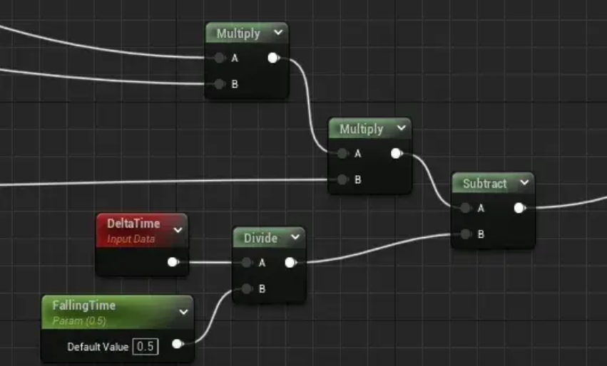 낙하 높이 부분의 계산은 매우 간단합니다. G 채널에 기록된 이전 프레임의 높이 값에서 deltaTime에 따라 직접 뺍니다. 현재 프레임이 낙하해야 하는 계산된 높이: