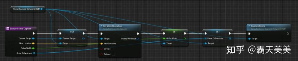 위의 발자국 감지 구성 요소와 마찬가지로, 우리는 여전히 구성 요소의 형태를 사용하여 Scene capture에 필요한 관련 데이터 정보를 처리 및 그리기를 위해 매니저에게 전달합니다. 여기서 씬캡처는 아래에서 위로 수직으로 직교뷰(Othergraphic view)를 취합니다. 직교 뷰 깊이(depth)(height로 변환 가능) 정보, 크기는 캡처된 객체 주변의 작은 영역만 커버하며, 일반적으로 128*128 크기의 RT만 있으면 기록을 저장할 수 있습니다. 다음 도식도에 따르면 :
