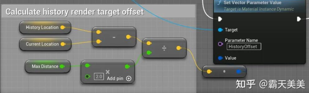 그리고 샘플링 중에 인접한 픽셀의 색상 값이 섞여 있어도 왜 이렇게 흐릿하게 될까요? 이는 RT_Trails를 구성하는 과정에서 위에서 언급한 RT_History를 샘플링할 때 현재 프레임과 이전 프레임 사이의 오프셋 값을 고려할 때 문제의 핵심은 이 오프셋 값을 계산하는 데 있기 때문입니다. 두 프레임의 위치를 직접 빼면 이 결과는 언리얼 엔진의 1cm 단위 정확도에 기반하지만 RT의 픽셀이 반드시 UE의 1cm에 해당하는 것은 아닙니다. (설정 방법에 따라 다릅니다. 예를 들어 저자의 예에서 캐릭터 주변 반경 6000cm의 영역을 나타내기 위해 2k 크기의 RT를 사용했습니다. 그러면 RT의 픽셀은 아마도 5cm 이상의 거리에 해당할 것입니다.) 두 가지의 정확도 차이로 인해 오프셋된 후 샘플링 UV RT 픽셀의 정확도를 완전히 정렬할 수 없습니다.