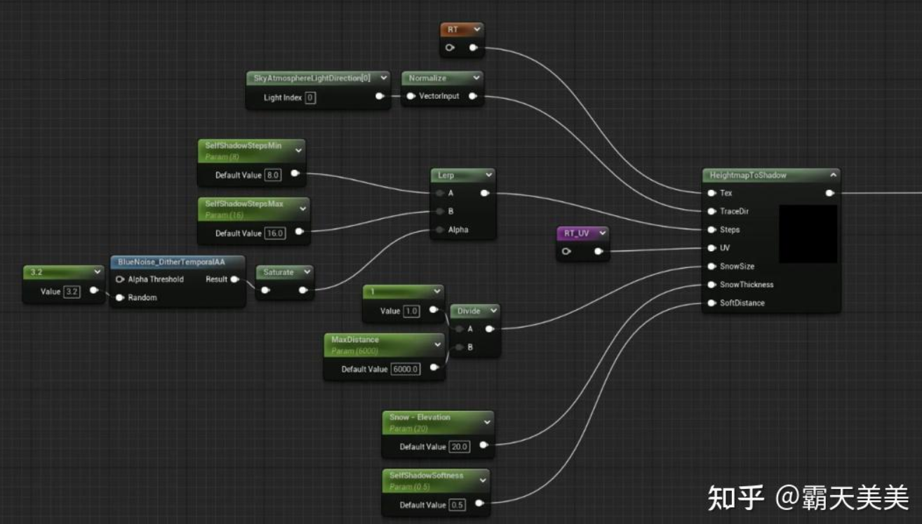 눈이 점점 더 깊어질 것이므로 Max distance의 두 RT를 혼합하여 Max 값을 찾습니다. 가장자리의 페이드 처리도 여기에서 수행됩니다. 마찬가지로 가장자리의 그래디언트 처리도 눈 재료가 RT_Trails를 샘플링할 때 나중에 나타납니다.