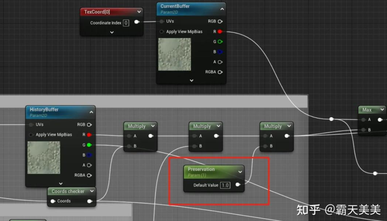 캐릭터가 임의로 움직일 때 두 프레임 사이의 오프셋 값은 끊임없이 변하고, 정확도 문제로 인한 오프셋 UV의 작은 오류도 변합니다. 필터링 모드에서 두 프레임 사이의 오프셋 값은 끊임없이 변합니다. 효과의 작용 하에서 주변 픽셀과의 믹싱 결과도 끊임없이 변하고, 동시에 믹싱 결과의 각 변화는 RT_History에 누적되어 전체 궤적이 점점 더 흐릿해집니다!