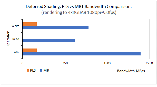 효율성 : PLS는 외부 메모리 대역폭 사용을 크게 줄여주며, 외부 메모리로의 데이터를 자주 쓰고 읽는 과정을 방지한다. 타일 내에서만 데이터를 저장하고 여러 패스에서 재사용할 수 있어, 메모리 트래픽이 줄어드는 이점이 있다. 특히 디퍼드 렌더링에서 여러 번 데이터를 재사용해야 할 때 매우 유용