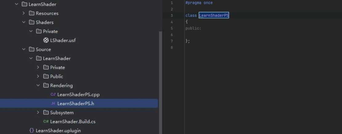 동시에 GLobal 생성자, 소멸자, 직렬화 함수, 역직렬화 함수 등과 같은 일부 필수 코드가 생성됩니다. 이 예에서 LearnShaderPS는 선언된 셰이더 유형이고 Global은 셰이더의 분류입니다.