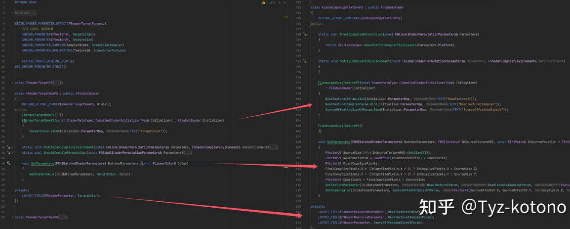 여기서 사용하는 것은 이전에 BEGIN_SHADER_PARAMETER_STRUCT의 매개변수 바인딩을 배웠기 때문에 여기서는 이전 메서드를 직접 사용할 수도 있습니다. 즉, 함수 정의만 변경하면 됩니다.