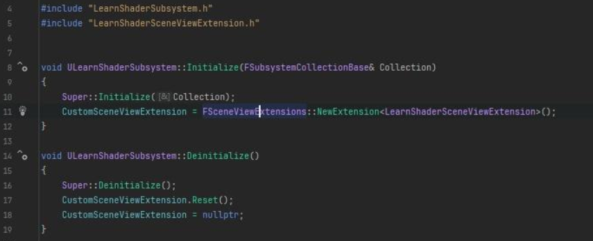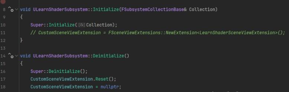 여기서는 SceneViewExtension을 관리하기 위해 엔진 하위 시스템을 선택합니다.