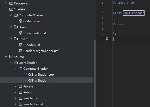 #include "CSBlurShader.h" IMPLEMENT_SHADER_TYPE(, FCSBlurShader, TEXT("/LearnShader/ComputerShader/csShader.usf"), TEXT("MainCS"), SF_Compute); |