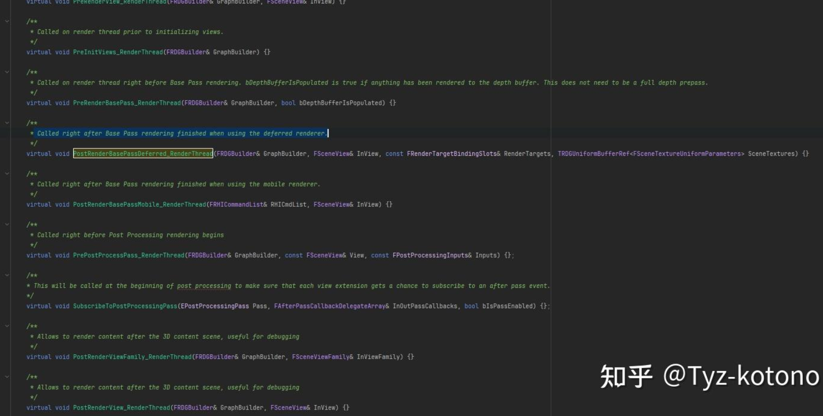 FSceneViewExtensionBase에서 호출 전후에 함수가 있고, 각 렌더링 단계에 스레드 함수가 있는 것을 볼 수 있습니다. 더 많은 것이 더 나은 원칙이며, 모두 복사하여 어떤 함수를 사용할지 살펴볼 수 있습니다.