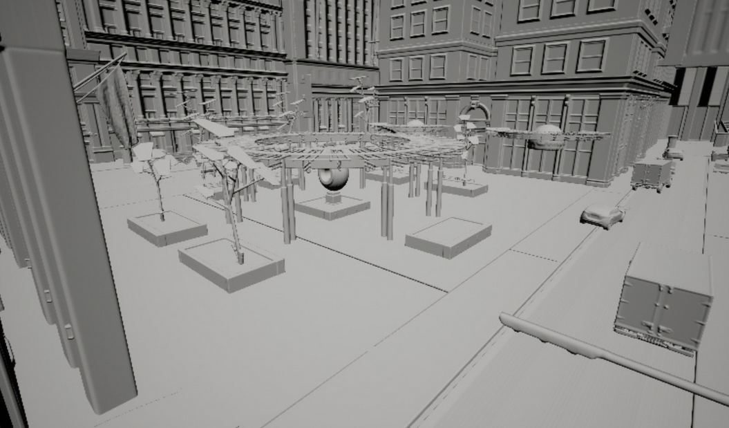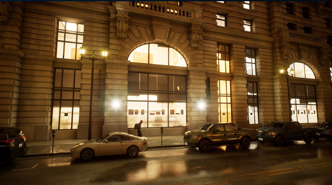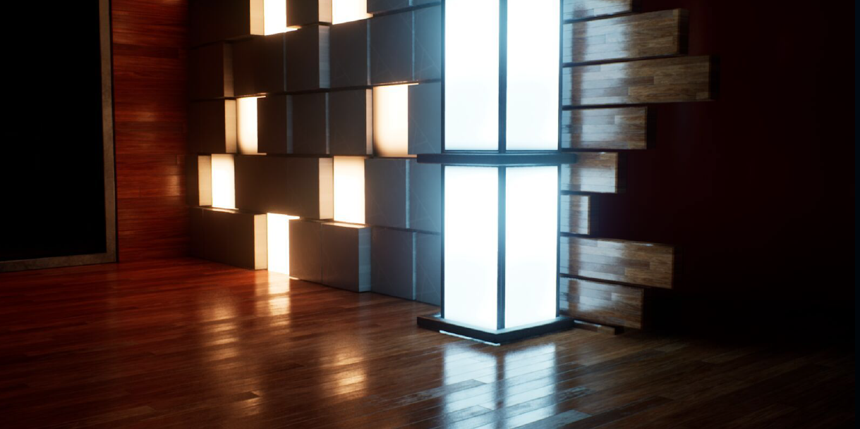역자주 : Lumen 사용에서 주의해야 할 부분이 큰 단일 mesh를 사용해 구성할 경우 라이팅 정보 갱신이 어렵기 때문에 벽이나 바닥, 기둥등은 분할된 상태로 작업해야하는것이 유리하다.