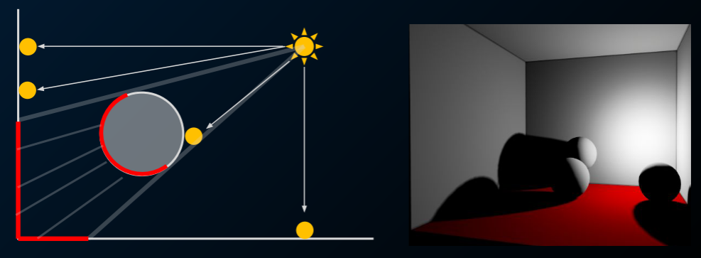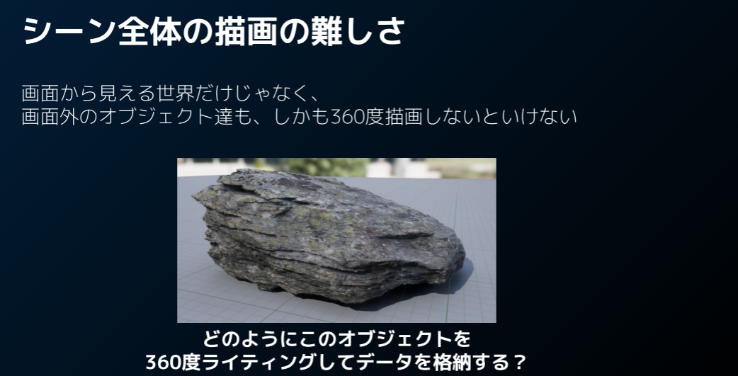 전체 장면... 즉, 화면 밖의 오브젝트의 라이팅도 계산해야 하기 때문에 단순화를 위한 다양한 궁리가 되고 있다