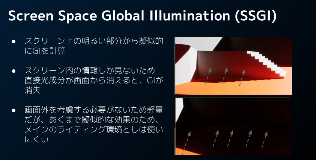 ● 화면 밖을 고려할 필요가 없기 때문에 경량이지만, 어디까지나 인위적인 효과이기 때문에, 메인의 라이팅 환경으로는 사용하기 어렵다