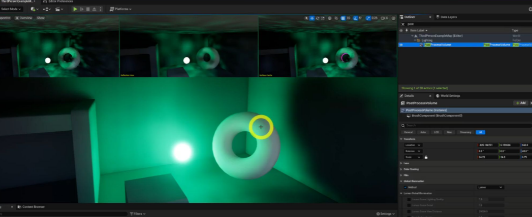 Lumen이 GI와 Reflection을 계산하는 간단한 장면