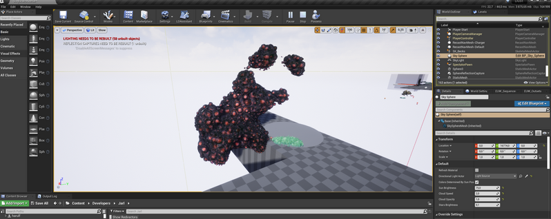 언리얼에서 일반 언리얼 액터 오브젝트를 사용하여 어떻게 정크와 주변 손상이 레벨에 추가되는지에 대한 샘플입니다. 우리는 모든 커스텀 셰이더를 에디터에서도 렌더링할 수 있도록 했습니다. SDF는 각 수정마다 에디터에서 재생성되므로 시리얼라이즈 할 필요가 없습니다.