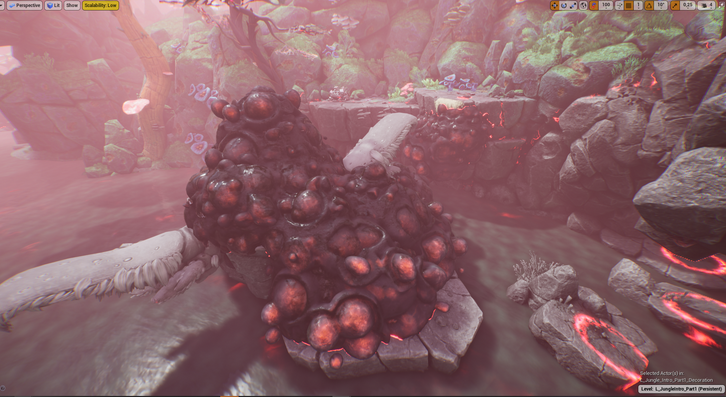 이 프로젝트에서 저는 코드 리더로 일했고 또한 끈적끈적한 슬라임과 그것이 세상에 미치는 파괴적인 시각적 효과에 대한 렌더링 기술을 개발하는 일을 맡았습니다.