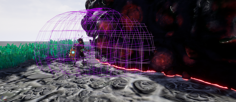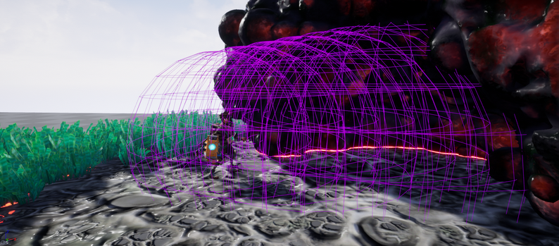Gunk는 바닥과 벽과 같은 레벨 지오메트리 내부에 생성되어서는 안 됩니다. 그러나 구형 액터를 사용하여 Gunk 덩어리를 정의할 때 레벨 지오메트리와 겹칠 수 있다는 점을 고려해야 합니다. 지오메트리 내부에서 Gunk를 제거하기 위해 선택한 솔루션은 Gunk 영역 내부의 지오메트리를 복셀화하고 이를 사용하여 Gunk 복셀을 빼는 것입니다. 이 시스템은 메시를 사용하여 Gunk를 배치하는 데 역으로도 활용할 수 있지만, 시도해 본 적은 없습니다.