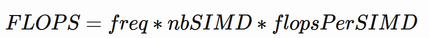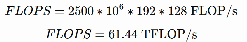 우리는 이 공식을 사용하여 초당 이론적인 부동 소수점 연산을 계산할 수 있습니다.