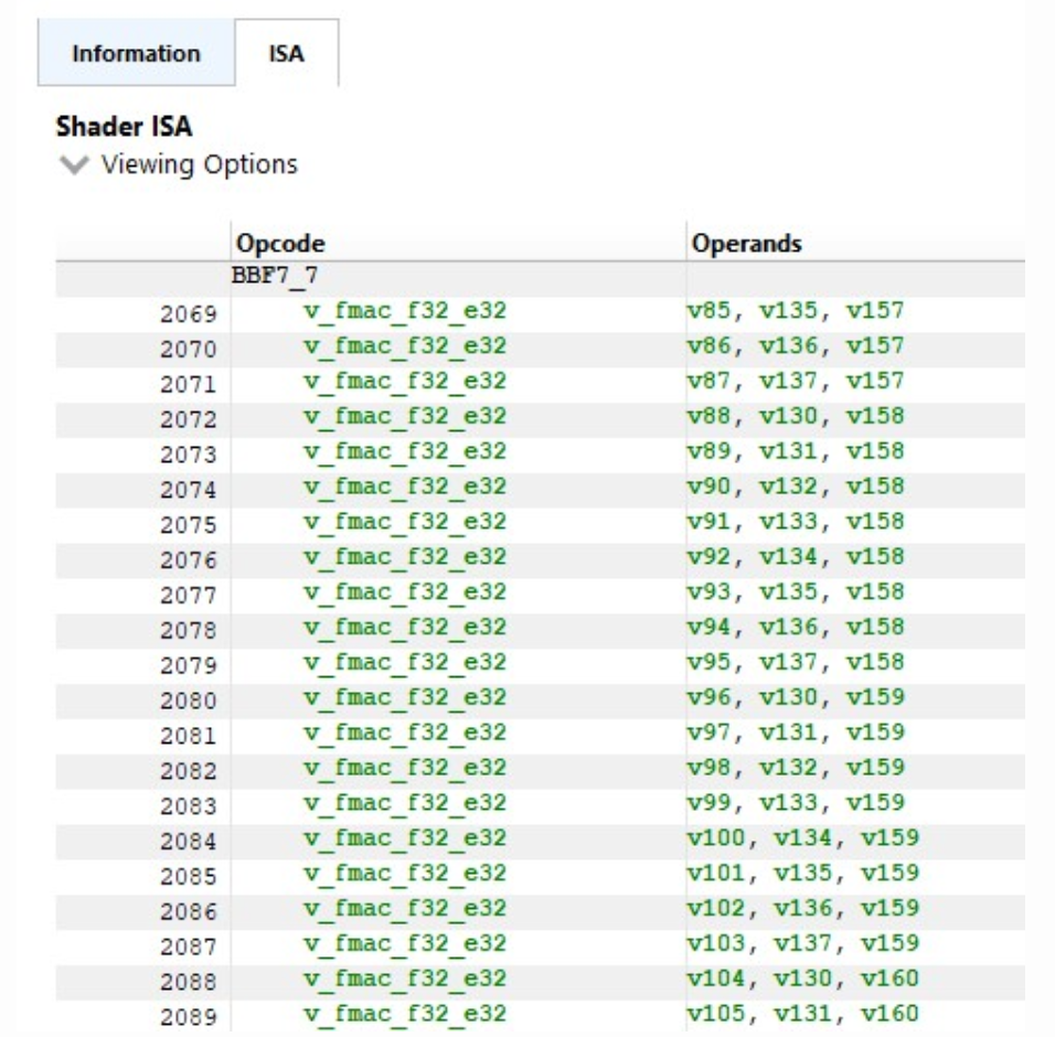 ISA가 좋아 보입니다. 이제 우리는 많은 v_dual_fmac 명령어를 가지고 있습니다. 일부는 여전히 단일 fma이지만, 정확히 우리가 원했던 것입니다.