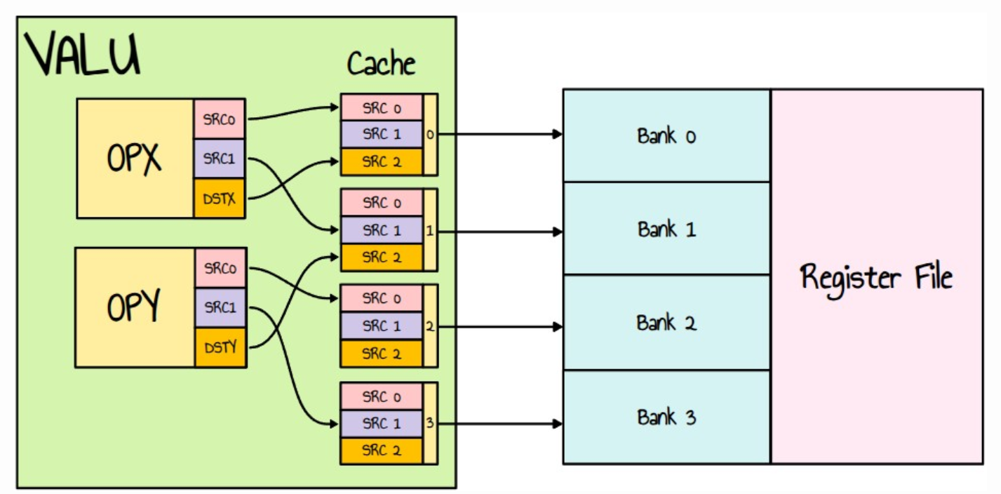 - lds 대기 시간은 34사이클에 불과하며, 대부분은 VALU 연산에 의해 숨겨집니다.