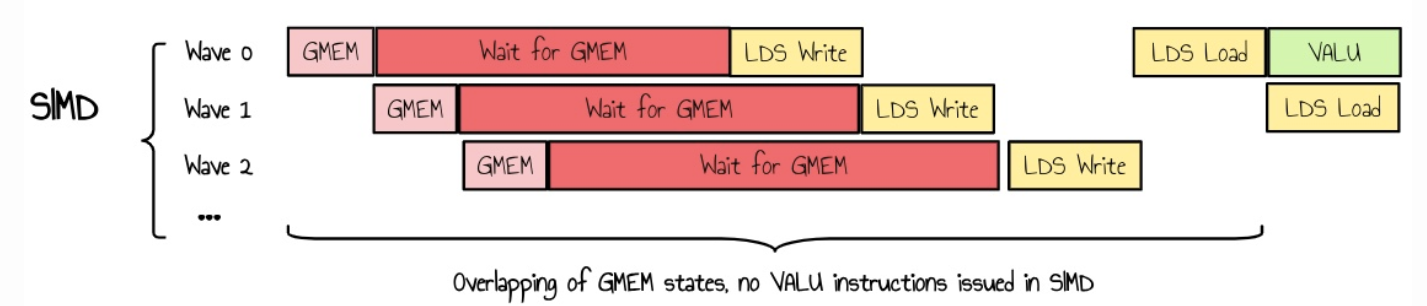 - GMEM 상태에서 너무 많은 사이클을 소비하면 동일한 SIMD의 여러 파동이 동시에 해당 상태에 있을 가능성이 높아져 VALU 작업이 효과적으로 줄어듭니다.