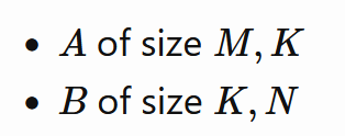 여기서 C는 크기 M, N의 결과 행렬입니다.